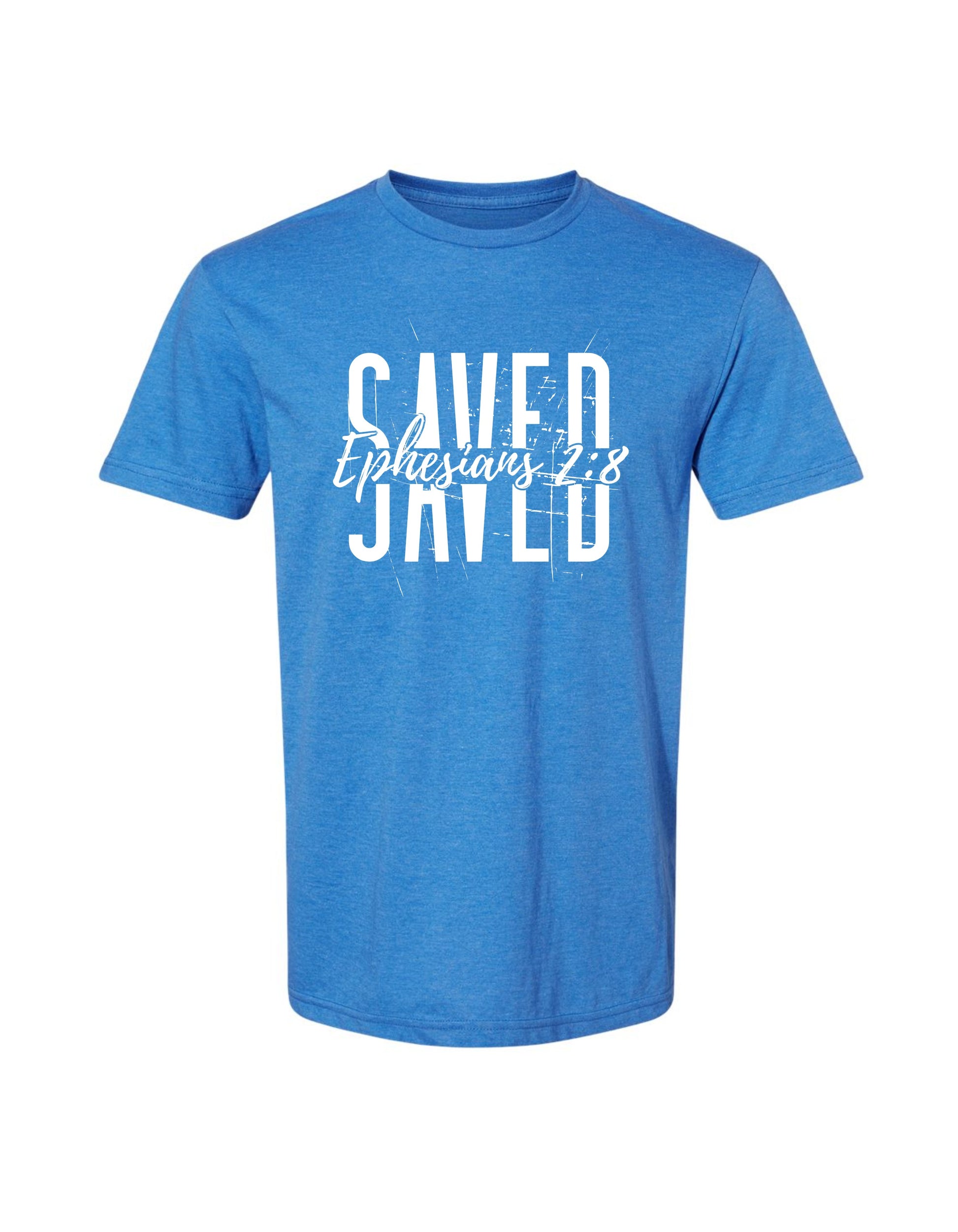 Inspired by Ephesians 2:8, this tee is a reminder that salvation is a gift of grace through faith, not by works. Wear your faith with purpose and share the message that changes everything: we are saved because of His love.
