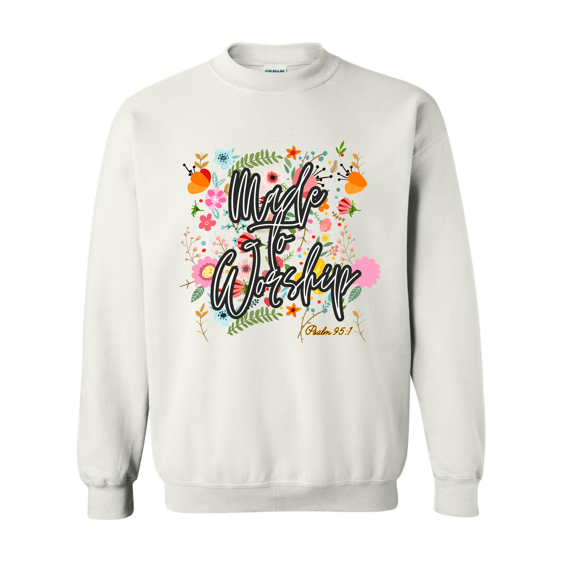 Celebrate your faith in comfort and style with our beautifully designed Made to Worship sweatshirt. Featuring vibrant hand-drawn florals, soft colors, and bold lettering, this cozy pullover is a perfect reminder of Psalm 95:1 — “Come, let us sing for joy to the Lord!”