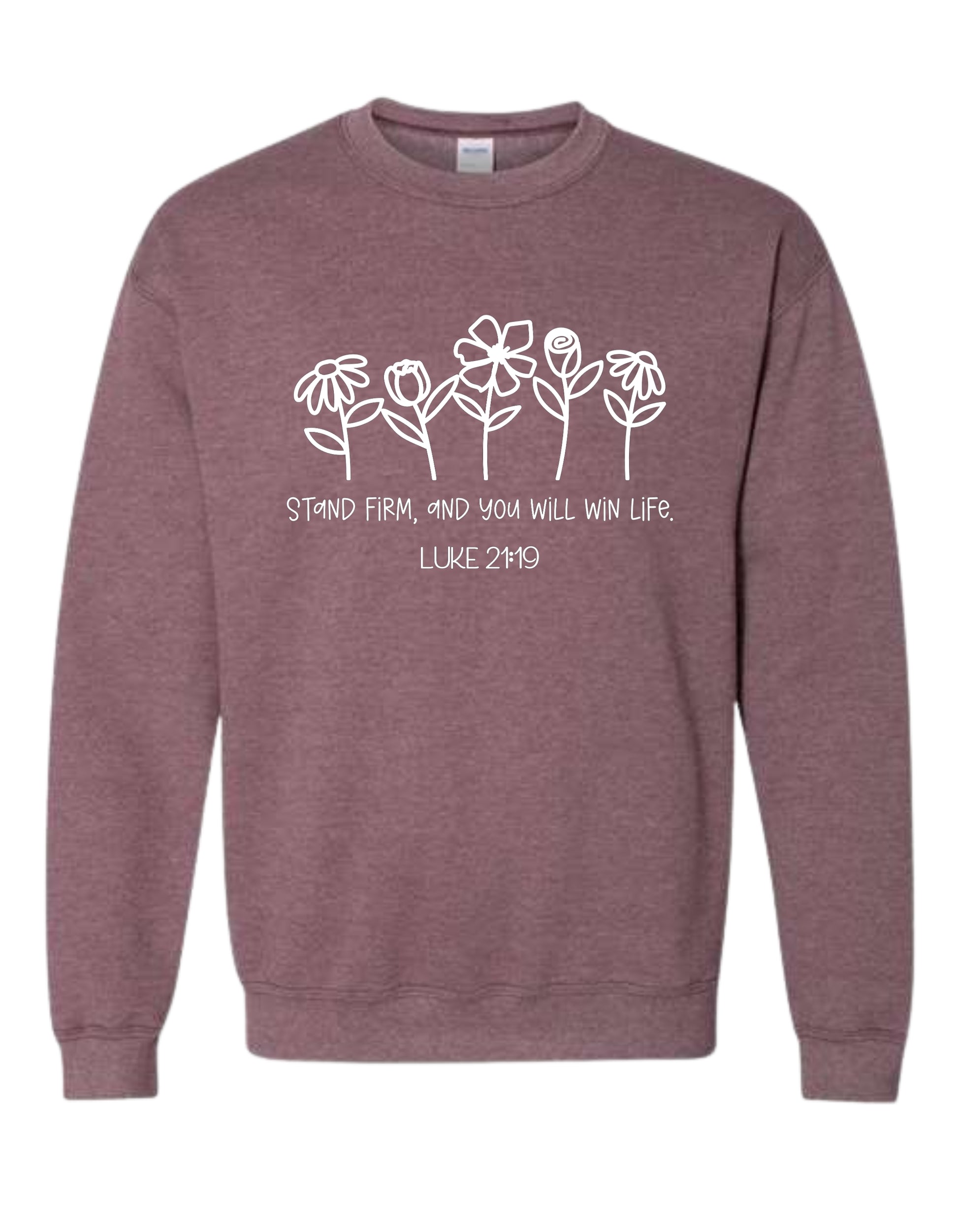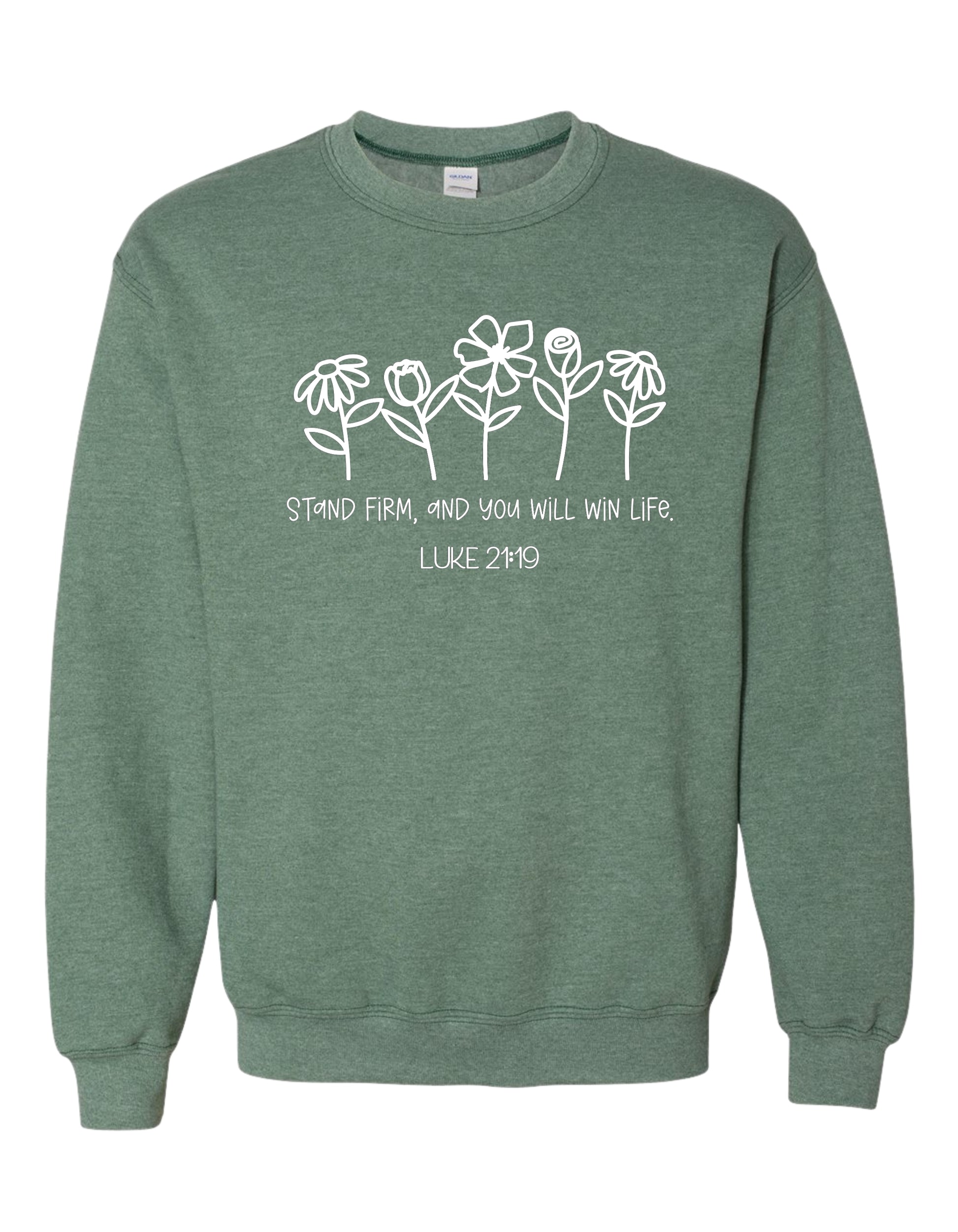 Stay grounded in faith with this Christian sweatshirt inspired by Luke 21:19 — “Stand firm, and you will win life.” A powerful reminder to remain steadfast through every trial, knowing that perseverance in Christ leads to true victory.